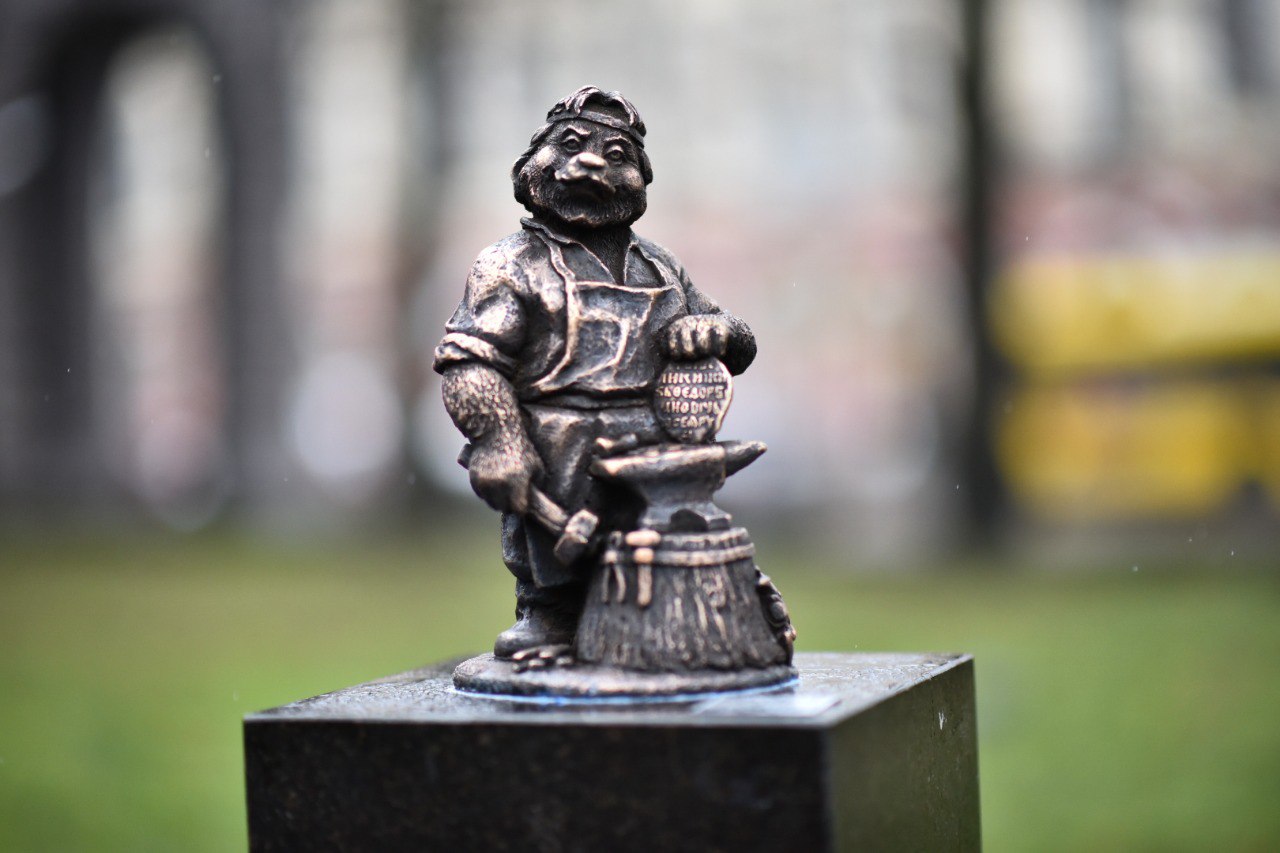 Скульптура появилась в рамках проекта «Медведики» на улице Комсомольской, 7. Скульптура медведя-чеканщика — знак уважения к людям, обеспечивающим стабильность финансовой системы региона и играющим важную роль в его развитии.
