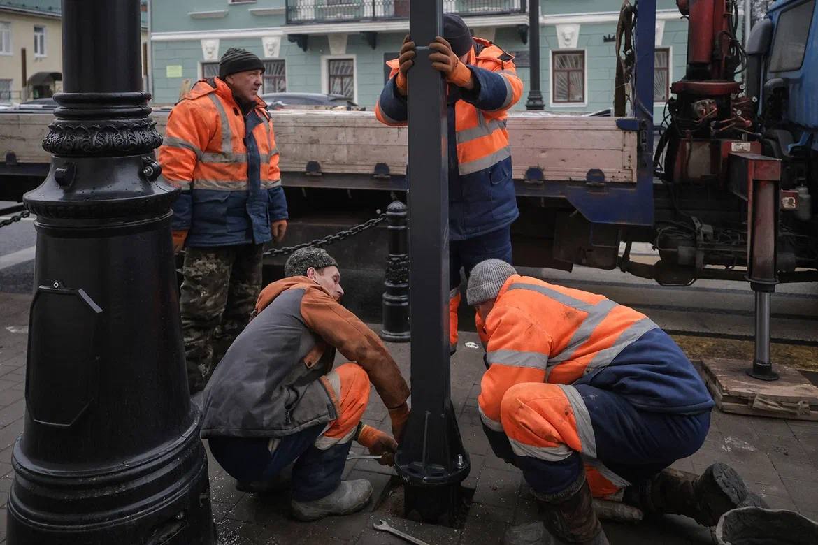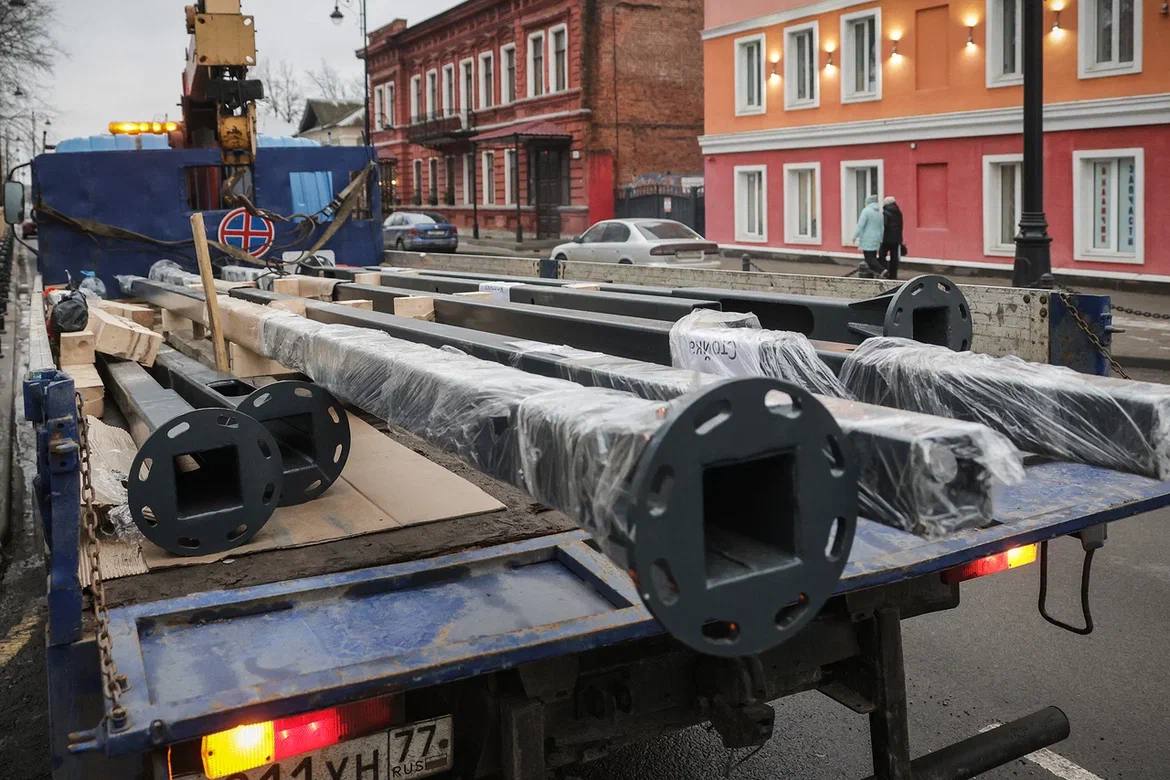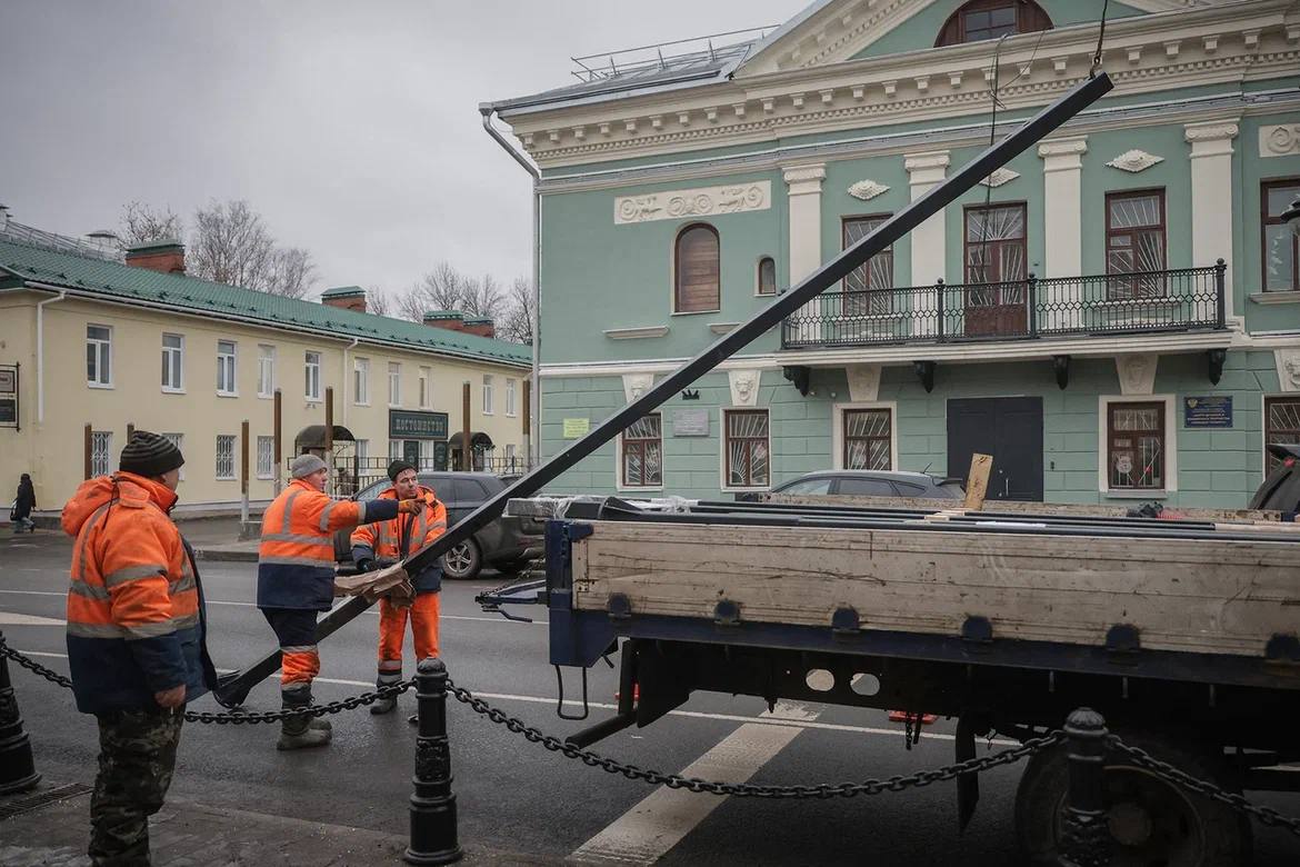 Завершаем реконструкцию улицы Чкалова. Сегодня начали установку чугунных опор под дорожные знаки и светофоры.