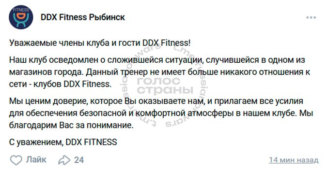 Местные жители сразу узнали в нападавшем сотрудника известного фитнес-клуба DDX Fitness. Тренер, по словам горожан, и раньше отличался вспыльчивым характером, а также агрессивным поведением. Руководство клуба уже отреагировало на случившееся. В официальном заявлении представители сети сообщили о начале внутренней проверки и подчеркнули, что подобное поведение сотрудников абсолютно недопустимо. Пострадавшая обратилась в правоохранительные органы.
