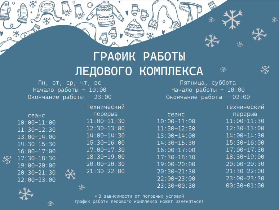 Ледовая площадка работает без выходных. С понедельника по четверг и в воскресенье – с 10:00 до 23:00, в пятницу и субботу – до 02:00. Вход бесплатный.