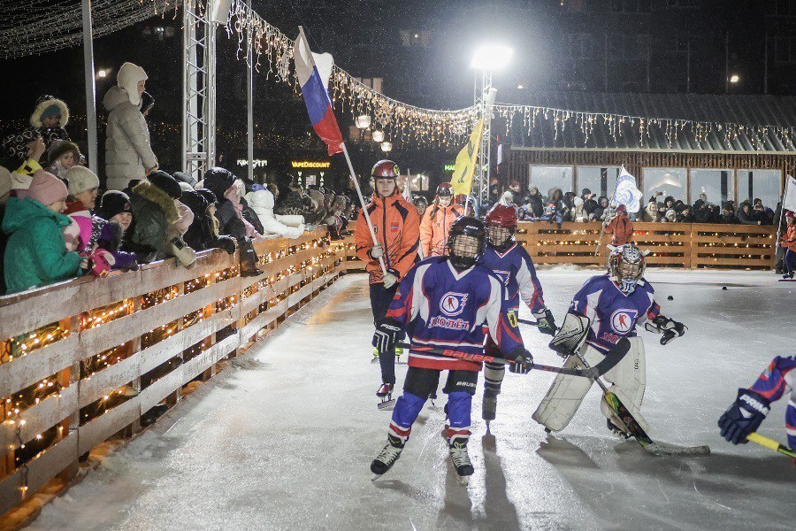 Торжественное открытие состоялось 20 декабря, в день НаШествия Дедов Морозов. Первыми на площадку, расположенную на площади Дерунова, вышли юные спортсмены, занимающиеся ледовыми видами спорта, - хоккеисты, шорт-трекисты, фигуристы.