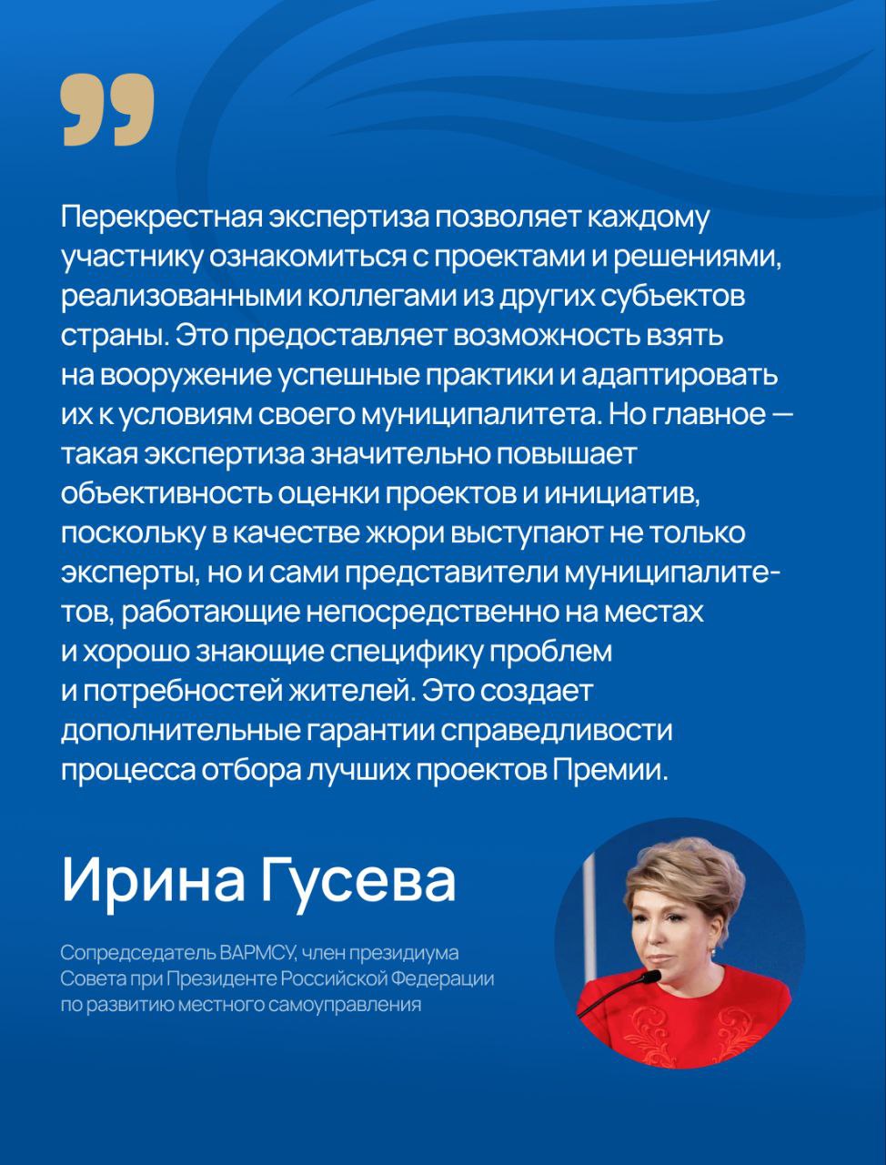 Соискатели III Всероссийской муниципальной премии «Служение» перешли на этап перекрестной экспертизы. Каждый участник, заявка которого прошла первичный анализ, получит доступ к оценке управленческих решений, инициатив или проектов коллег из других номинаций и регионов России. Весной на портале «Госуслуги» откроется Народное голосование за лучшие инициативы.