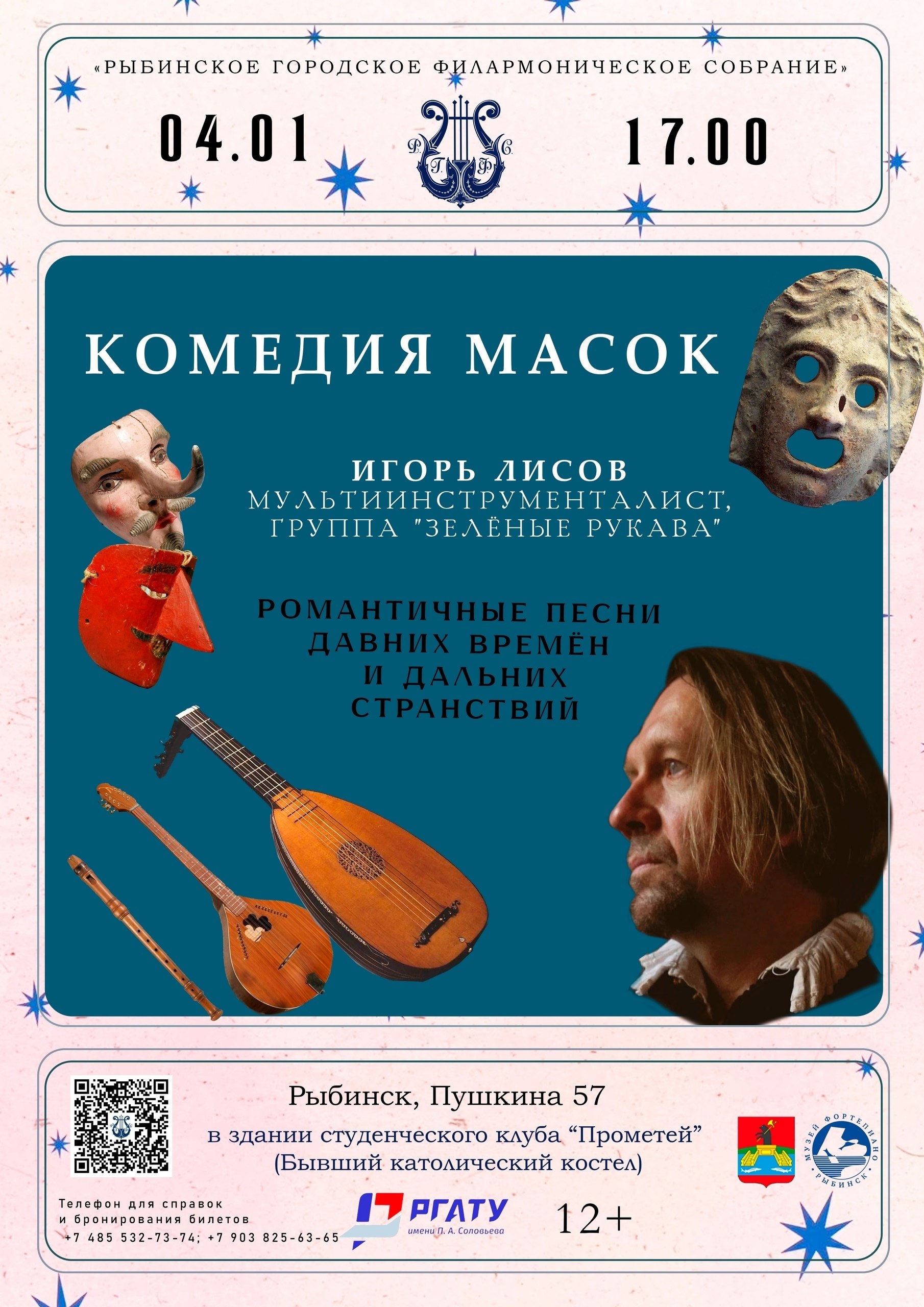 4 января, 17:00 - романтика трубадуров и фолк-баллады в исполнении мультиинструменталиста Игоря Лисова;