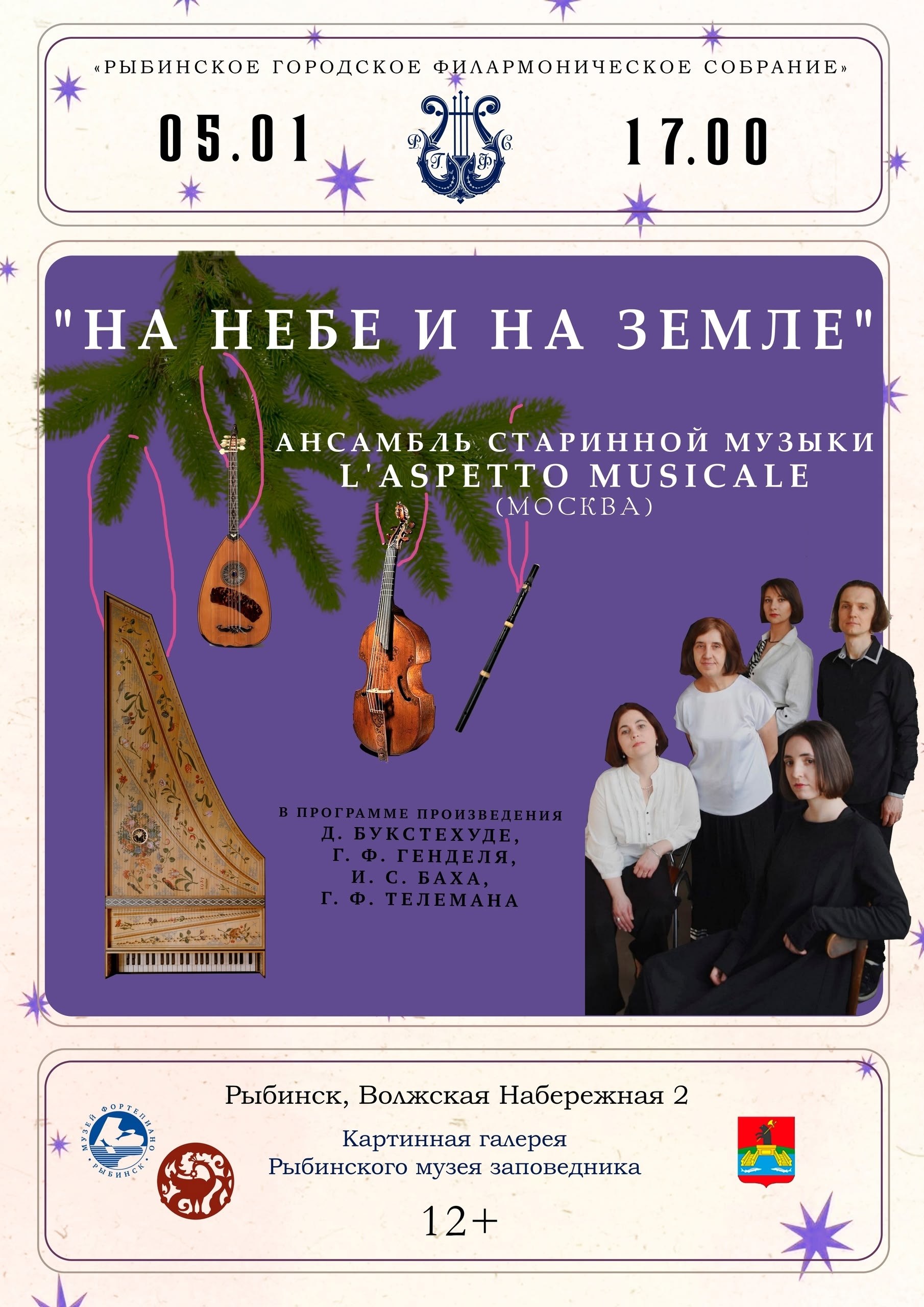 6 января, 17:00 - шедевры барокко под звуки клавесина программа «На небе и на земле»;