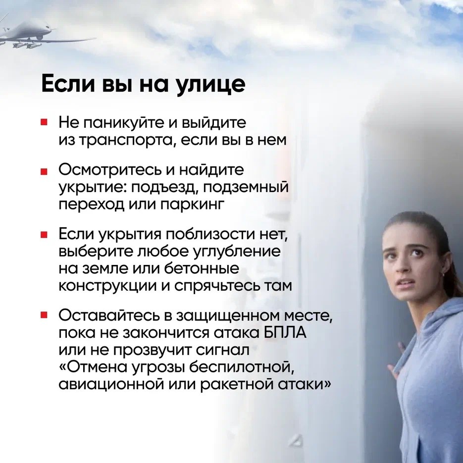 Помните, что о вводе и снятии беспилотной опасности сообщают официальные каналы. В экстренной ситуации обращайтесь за помощью по номеру 112.