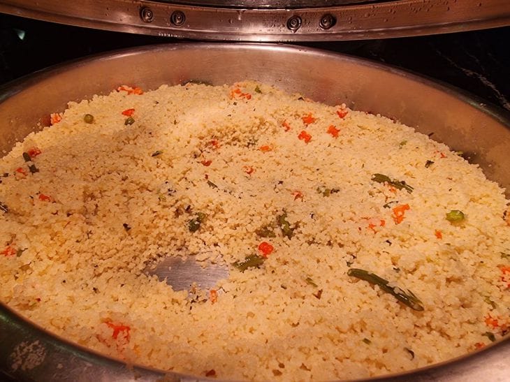 Перед готовкой его важно промыть до прозрачной воды, чтобы удалить излишки крахмала, иначе вместо рассыпчатой текстуры получится липкая масса.