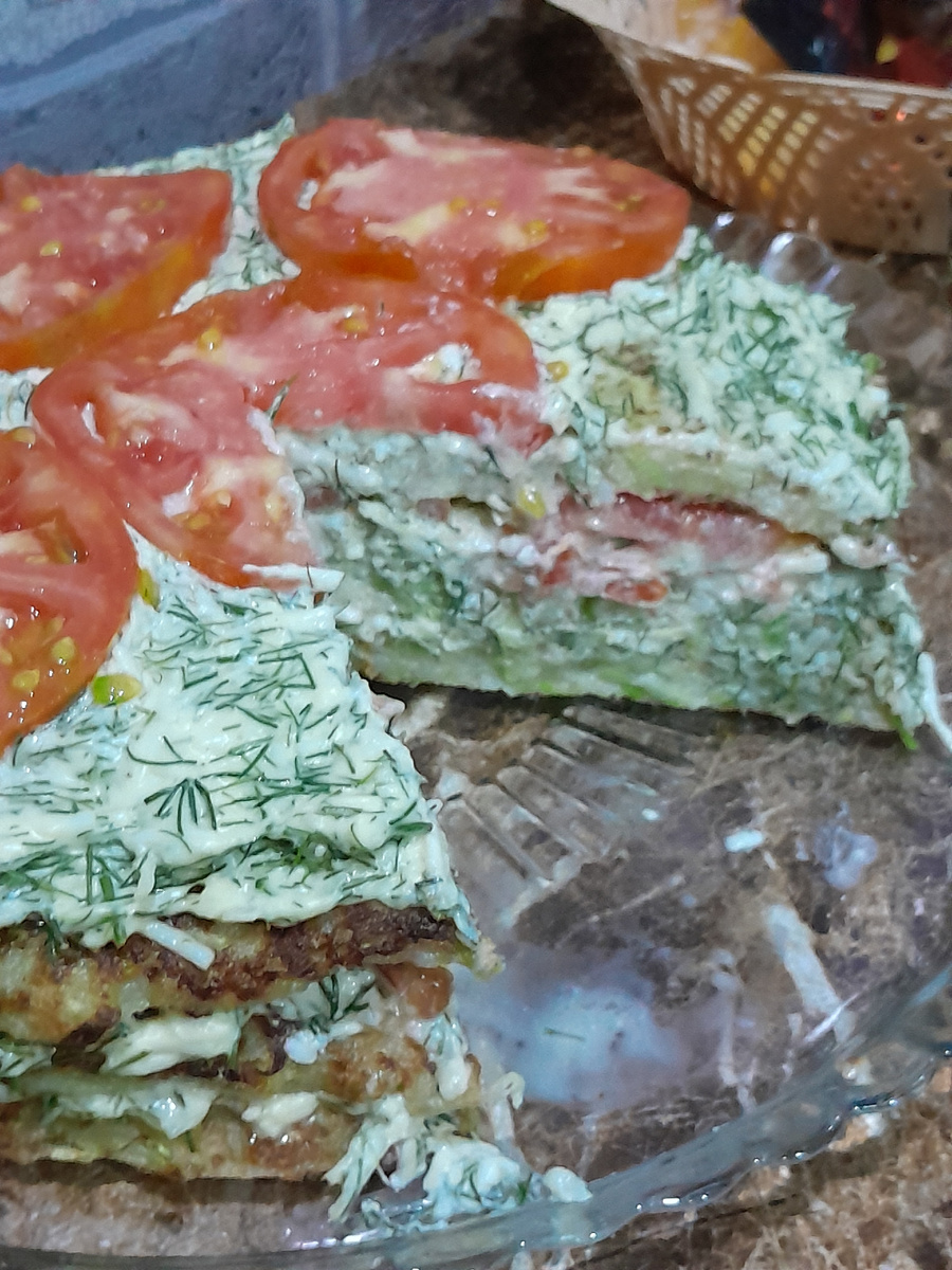 Кабачковый торт — это не только яркое украшение стола, но и отличное решение для летнего обеда или фуршета. Ароматные слои кабачков, пропитанные нежным соусом и дополненные свежими помидорами, сделают это блюдо настоящим хитом среди гостей и близких.