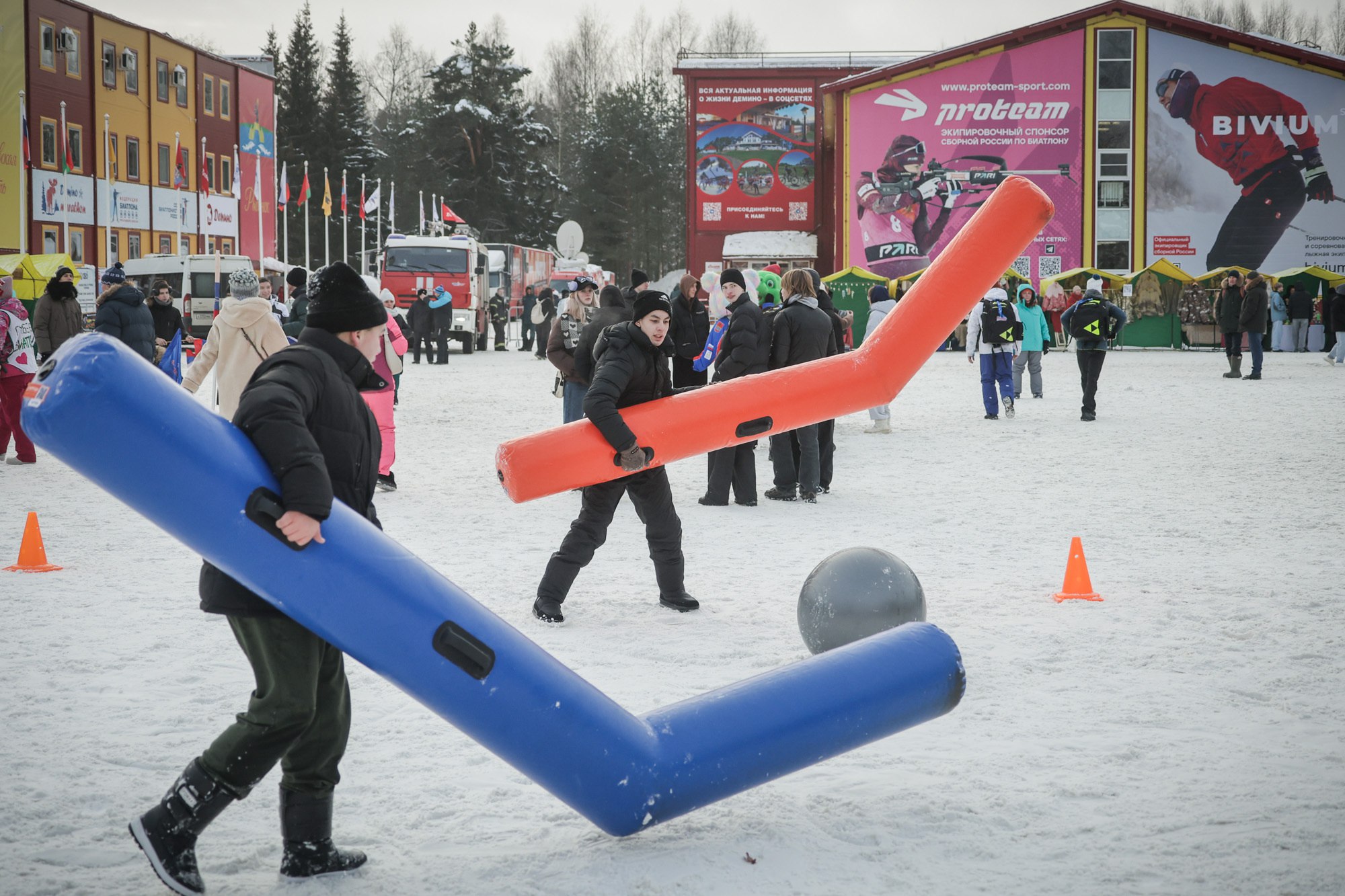 На главной площади «Демино» гостей ждут народные игры и зрелищные любительские соревнования с названием «Биатлонный ход», «Биатлонные традиции» – семейные и командные эстафеты, интерактивные площадки – «Биатлон – бол», «Баскет-биатлон», «Биатлон - батл». Будут работать фотозоны, ростовые куклы. Фудкорт порадует биатлонным меню. Болельщикам предложат пельмени самолепные, спринт-бургеры, масс-старт-шашлыки, солянку «по-рыбински», плов «по-демински», овощи-гриль, жареные чебуреки, пироги с разнообразными начинками, ароматный чай из русского самовара и много других горячих блюд и напитков.