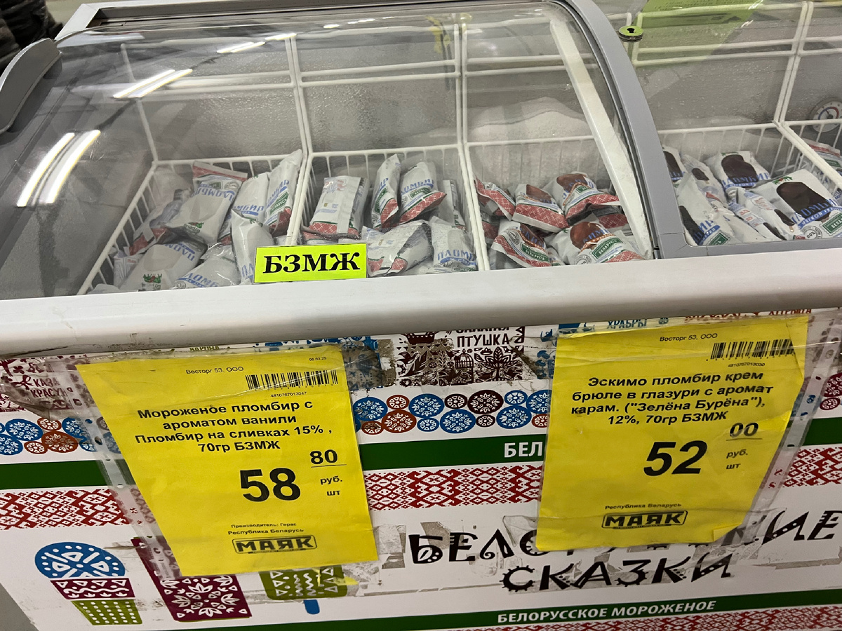 В российские магазины, такие как «Маяк» и «Светофор», пришло новшество — мороженое под брендом «Зелена Бурена», произведенное в Беларуси. Этот продукт из категории пломбира выделяется среди привычных предложений, и его появление вызвало интерес у покупателей.
