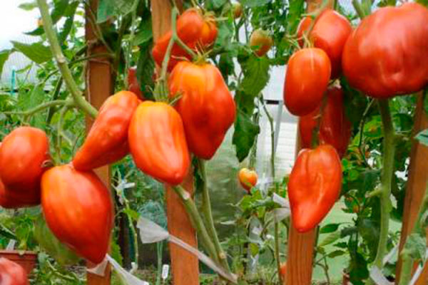 Индетерминантный сорт порадует ценителей внушительными размерами: растения могут достигать 200 см в высоту. Листва у него довольно скромная, что позволяет солнцу свободно освещать плоды. Сердцевидные помидоры этой разновидности изначально имеют ярко-зеленый цвет, а по мере созревания превращаются в насыщенно-красные или розовые. В весе они варьируются от 300 до 500 г, но не редкость и экземпляры до 1 кг!