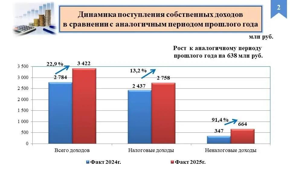 Подвели итоги финансовой работы в 2025 году. Констатируем рост по сравнению с предыдущим периодом собственных доходов Рыбинска почти на 23%, до 3 млрд 400 млн рублей. Более чем на 1 млрд выросли безвозмездные поступления, они составили почти 7 млрд.