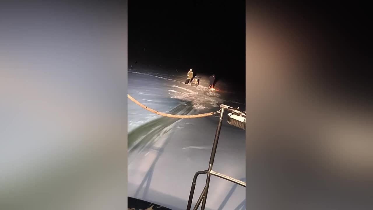 В спасательную станцию «Переборы» поступил сигнал о помощи: двое рыбаков на мотобуксировщике застряли в снежной каше в районе острова Святой Мох и не могли самостоятельно выбраться к берегу — расстояние было около 5 км.