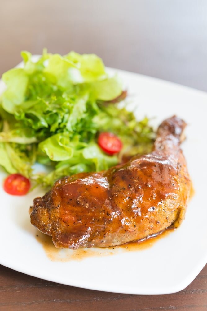 К окончанию тушения соус практически уварится, а окорочка пропитаются ароматами и вкусами.