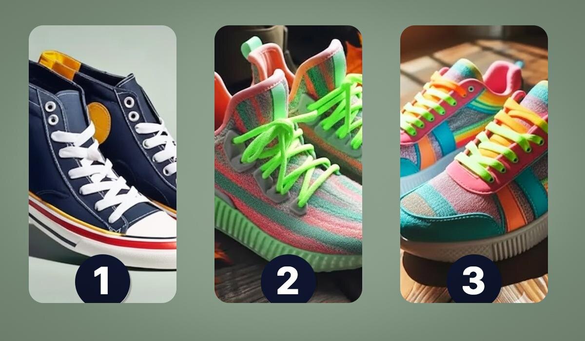 Перед вами три пары кроссовок. Обратите внимание на их форму и цвет, выберите ту, что наиболее привлекательна. Доверяйте своей интуиции, а затем ознакомьтесь с описанием своего выбора.