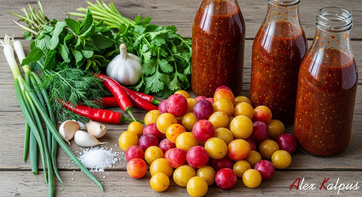 Предлагаемый рецепт имеет маленькую, но важную деталь: добавление зеленого лука придает соусу свежесть и уникальный вкус. Подходящие сливовые фрукты можно заменить местными сортами, если нет доступа к грузинским. Однако важно помнить, что оригинальный вкус все же может измениться.