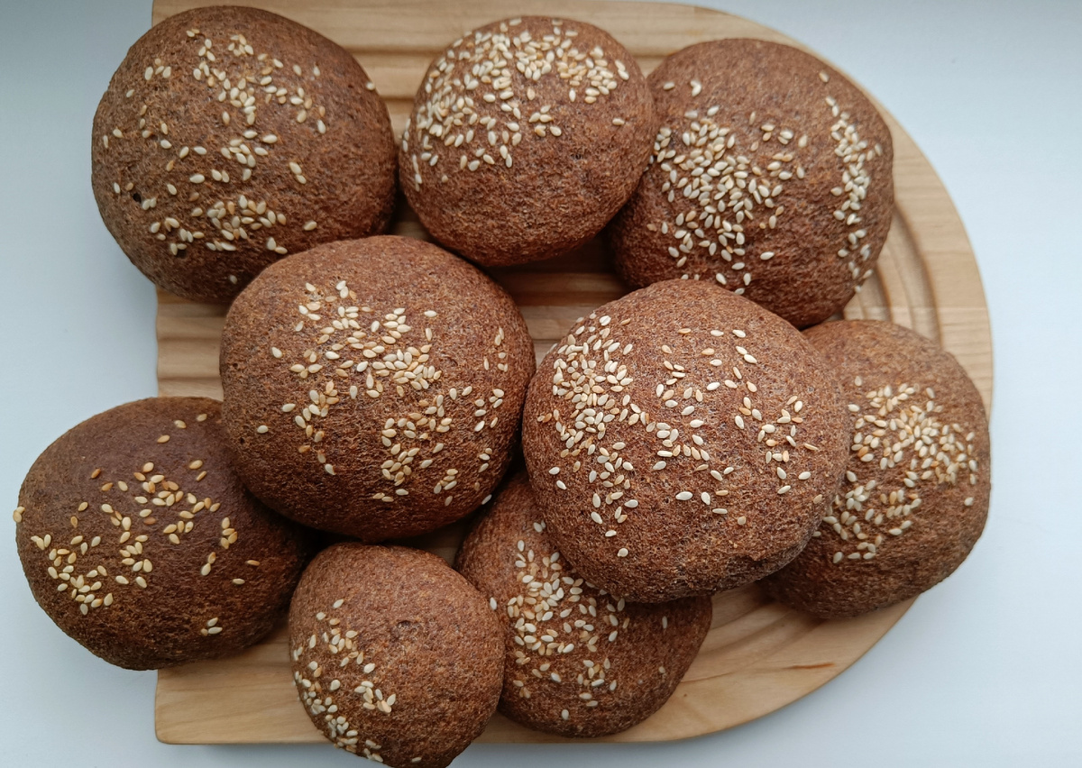 ПП-булочки с псиллиумом радуют естественным цветом и нежной структурой. В составе немного кокосовой муки, которую можно заменить овсяной. Ржаной оттенок и мягкость сохраняются при минимальном виде добавок.