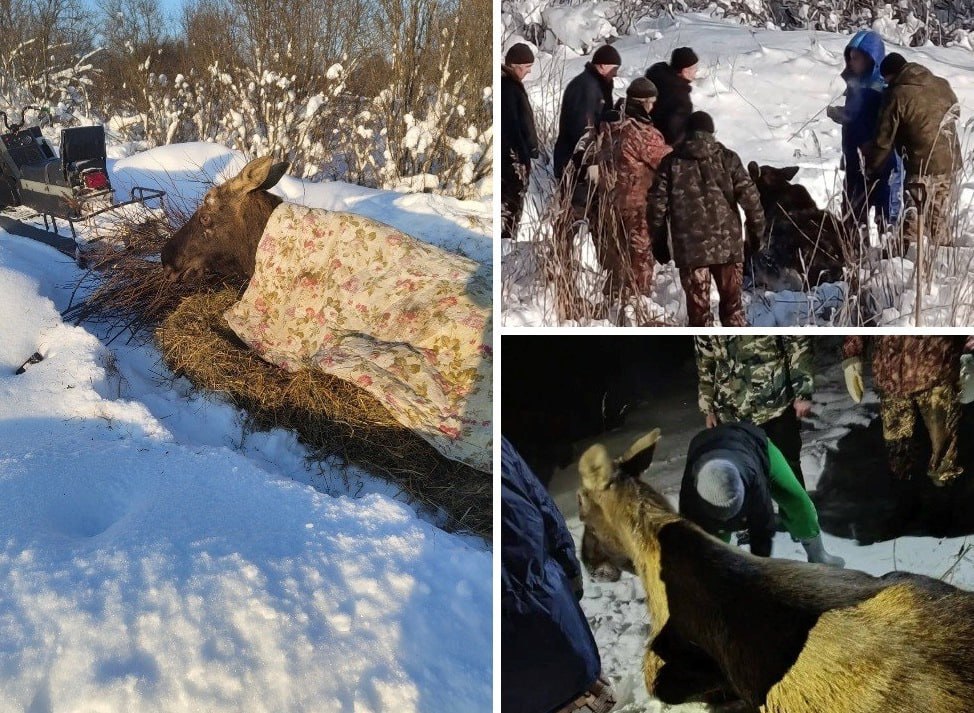 Спасённого в Ярославской области лося везут на заповедный хутор в Подмосковье