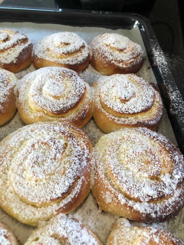 При желании готовые улитки можно посыпать сахарной пудрой или полить растопленным шоколадом. Наслаждайтесь теплым чаем и вкуснотищей!