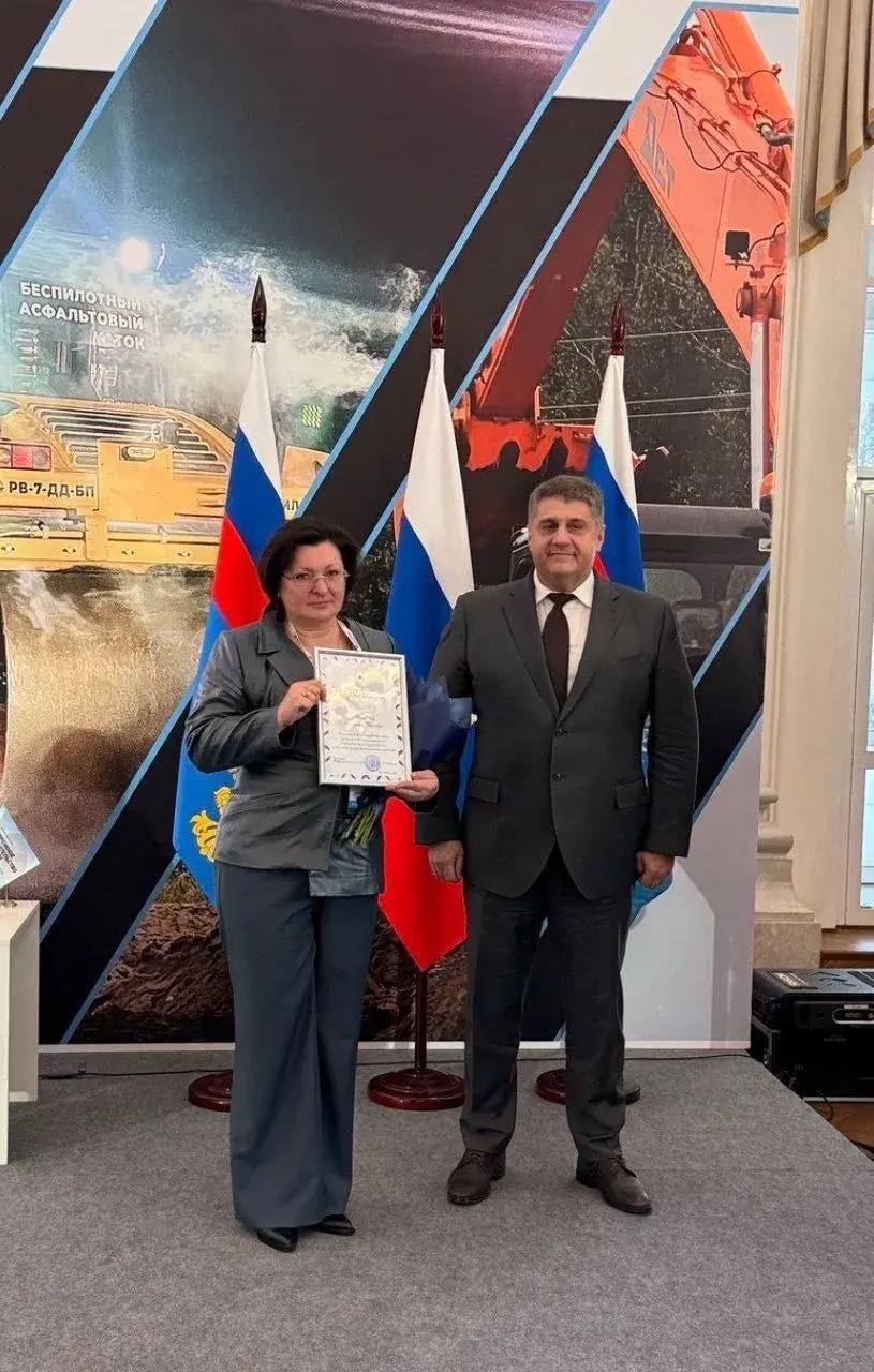 Генеральный директор рыбинского завода «Раскат» Надежда Тихонова получила благодарственное письмо за заслуги в области развития науки, достижение высоких результатов в производственной деятельности и личный вклад в развитие дорожного хозяйства. Награду ей вручил руководитель Федерального дорожного агентства Роман Новиков на выставке «Дорожное строительство в России» в Москве.