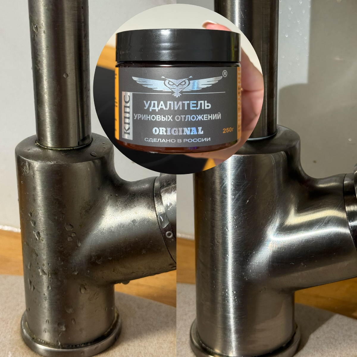 Посмотрите на разницу: смеситель до и после применения этого средства. Результат говорит сам за себя!