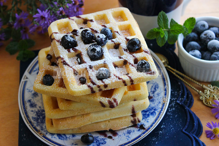 Эти вафли можно подавать с ягодами, свежими фруктами, шоколадом или сгущенкой – выбирайте по вкусу. Приятного аппетита!