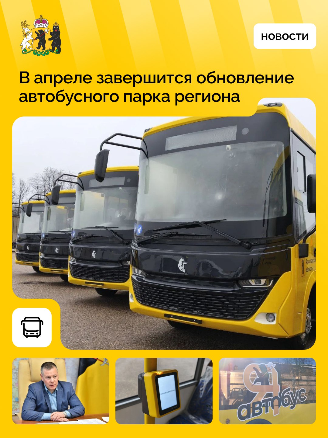Обновление автобусного парка региона полностью завершится в апреле: на маршруты выйдет заключительная партия из 204 новых автобусов. Техника будет направлена в 11 округов Ярославской области, что позволит повысить комфорт и надежность перевозок.