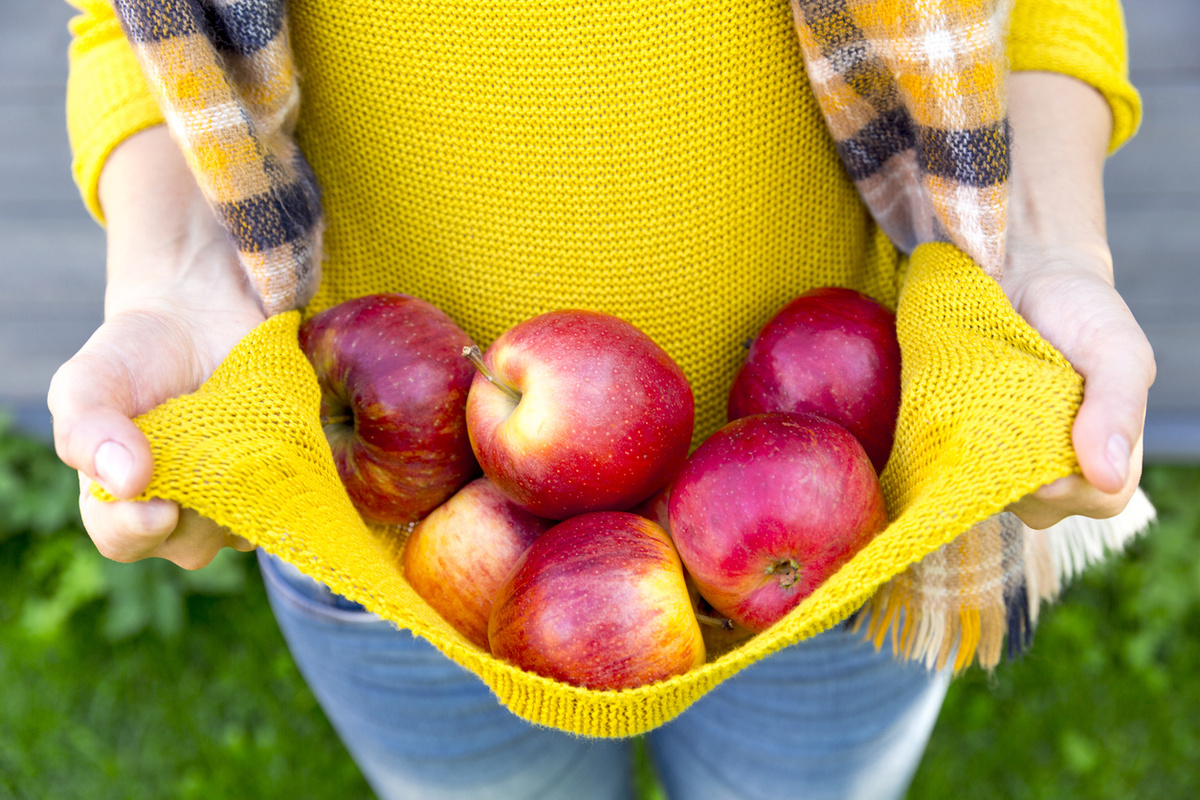 Одно из простых решений — приобрести фартук с карманами, который поможет в сборе урожая. Просто снимите яблоко с ветки и положите его в созданный карман. Когда уровень фруктов станет заметным, можно легко освободить карман, выгрузив плоды в заранее подготовленную тару. Такой подход позволяет значительно облегчить процесс сбора.