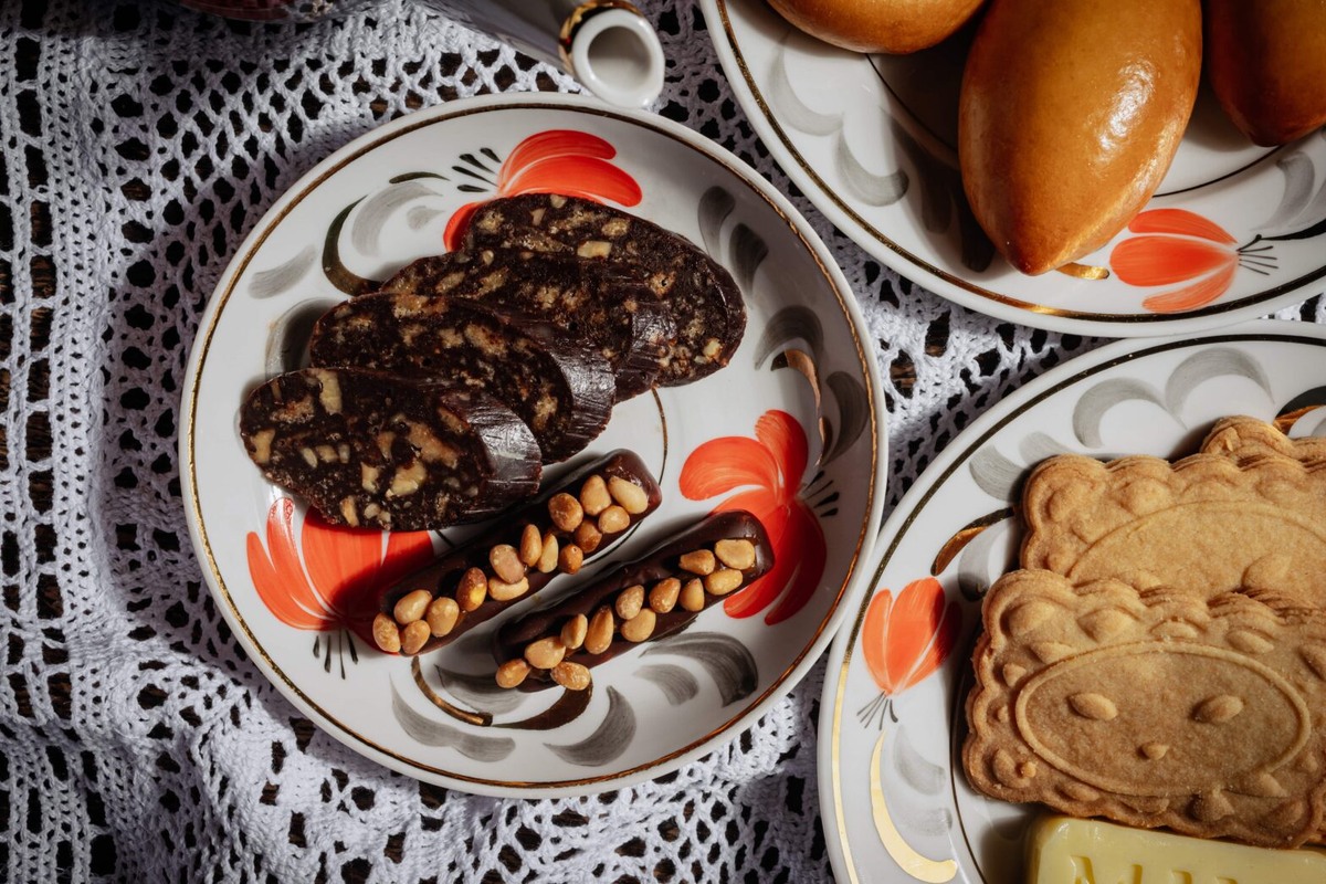 Manul подает чай в сервизе из детства, где стопку булочек и расплавленный шоколад напоминают о бабушкином столе. Этот элемент ностальгии превращается в маленький домашний ритуал, который можно повторять в течение праздников и без лишних хлопот.