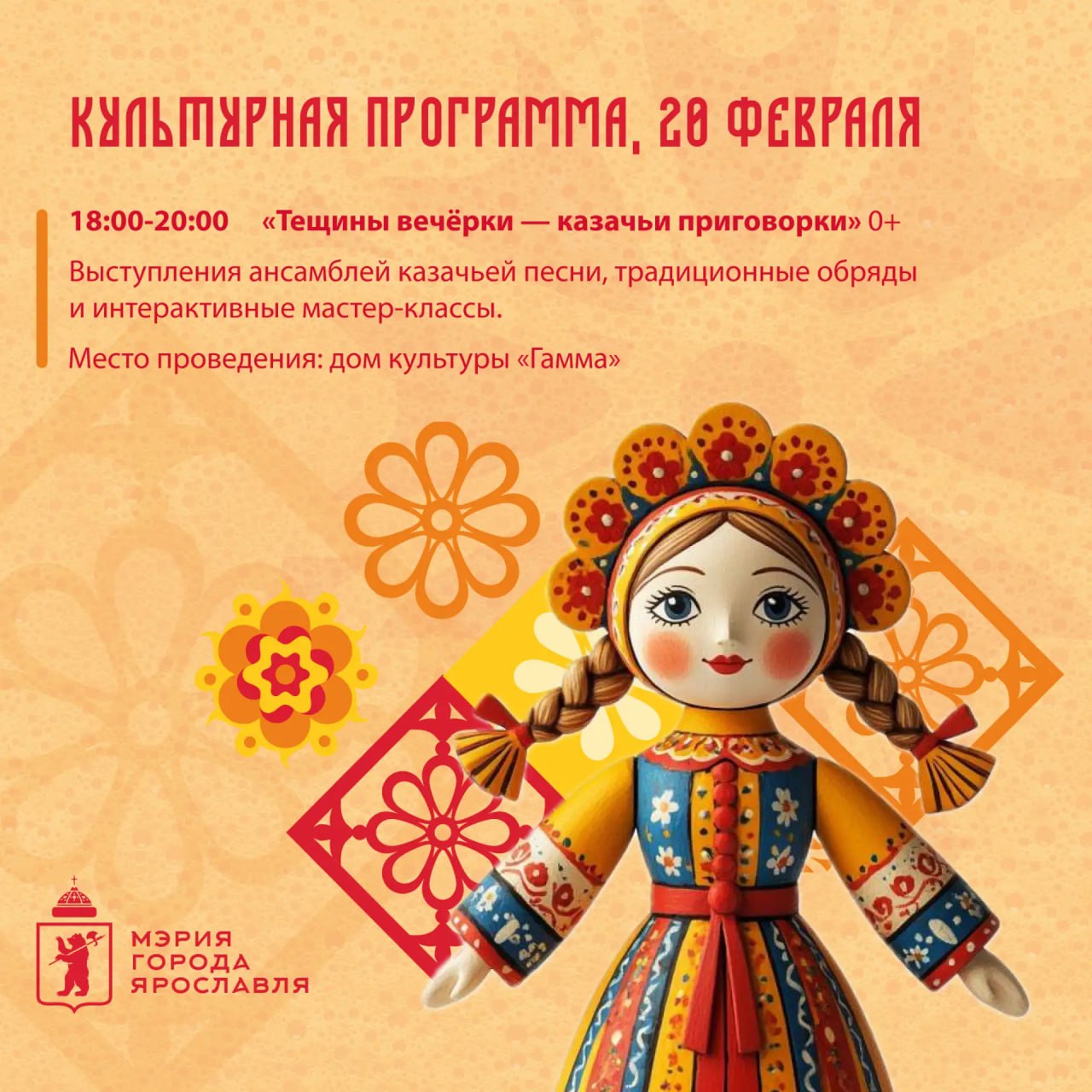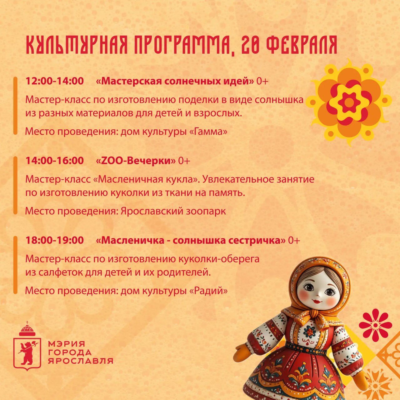 Программа мероприятий на 20 февраля — в наших карточках. А подробную информацию можно узнать на сайте масленица76.рф