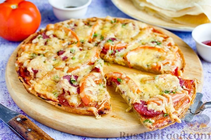 - Блинная пицца: Пицца на основе блинов — это идеальный выбор для вечеринок. Сочетая колбасу, помидоры и множество сыра, вы легко удивите своих гостей уникальным угощением.