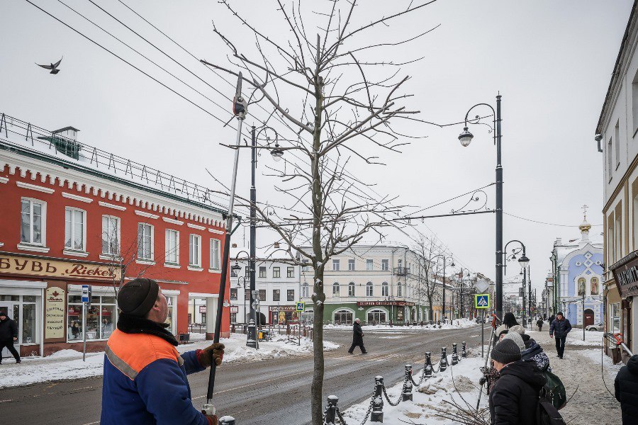 На улице Крестовой в исторической части города высажены клены и липы. Деревья еще молодые, и не требуют много времени на обрезку. Так за час специалисты обработали 21 ствол. Но на этом работы не закончится. Часть деревьев нуждаются в особом уходе – лечении.