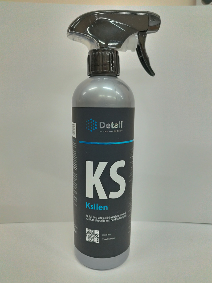 По рекомендации профессионалов, был приобретён очиститель Detail KS Ksilen, артикул 878468286, в бутылке объёмом 500 мл с триггером для удобного и экономного применения. Как оказалось, средство имеет приятный миндальный аромат и легко наносится. Инструкция проста: либо распылить на стекло и распределить с помощью микрофибры, либо нанести на ткань, а затем работать со стеклом. Главное — избегать усилий.