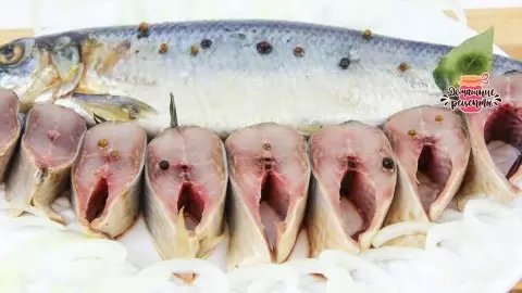 Теперь пора заняться самой селедкой. Предварительно размороженную рыбу нужно промыть, а внутренности можно либо оставить, либо удалить по желанию. Селедку укладывают в подготовленный контейнер к специям и заливают приготовленным рассолом. Для того чтобы рыба не всплывала, сверху ставится небольшой груз, а сам контейнер закрывается крышкой.