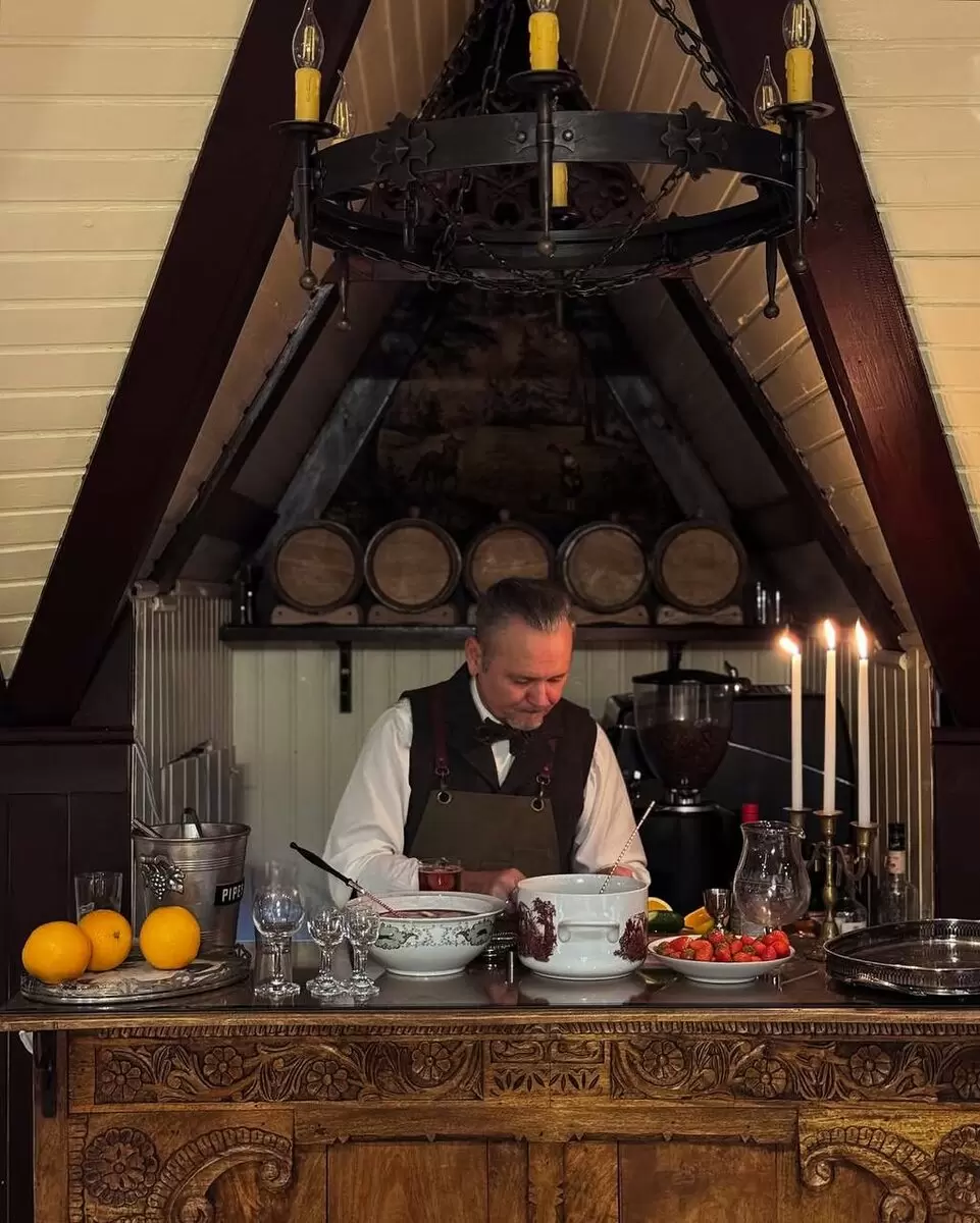 Сегодняшний визит в Переделкино — это больше чем смена адреса; здесь доминируют охотничьи сеты и традиционные блюда из разных стран, не забывая о месте, где когда-то продавали сувениры. Центральной частью пространства остаётся каменный очаг, который напоминает замковую гостеприимность и тепло, создавая настроение спокойного вечера.
