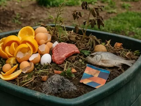 В то же время, можно добавлять опавшие листья, траву, овощные отходы, а также бумагу и яичные скорлупы, что поможет создать благоприятные условия для разложения и избежать неприятных запахов.