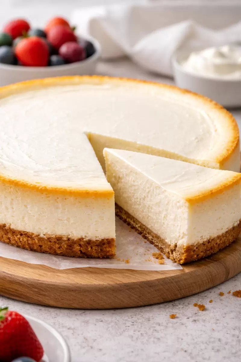 Для проверки готовности края должны быть плотными, а центр — слегка дрожать. После выпекания важно дать чизкейку остыть в духовке с открытой дверцей в течение часа, а затем полностью охладить при комнатной температуре и убрать в холодильник минимум на 6 часов.