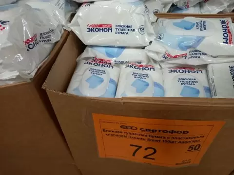 - В "Светофоре" упаковка стандартных влажных салфеток объемом 150 штук стоит всего 72 рубля.