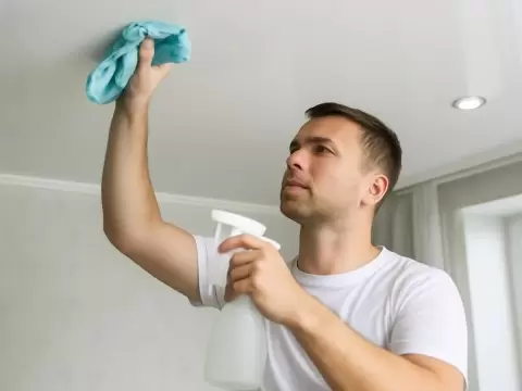 В то время как матовые потолки требуют более осторожного подхода. Сначала желательно пропылесосить потолок на небольшком расстоянии, а затем использовать легкий мыльный раствор. Устранение разводов можно произвести с помощью раствора нашатырного спирта.