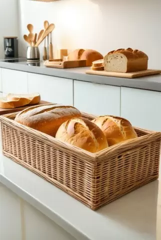 Керамические и плетеные корзины предлагают особый подход к хранению хлеба. Керамика, благодаря пористой структуре, активно регулирует уровень влажности, способствуя долговременному сохранению свежести. Плетеные корзины, изготовленные из натуральных материалов, обеспечивают идеальную циркуляцию воздуха, что позволяет хлебу «дышать» и не терять свою текстуру.