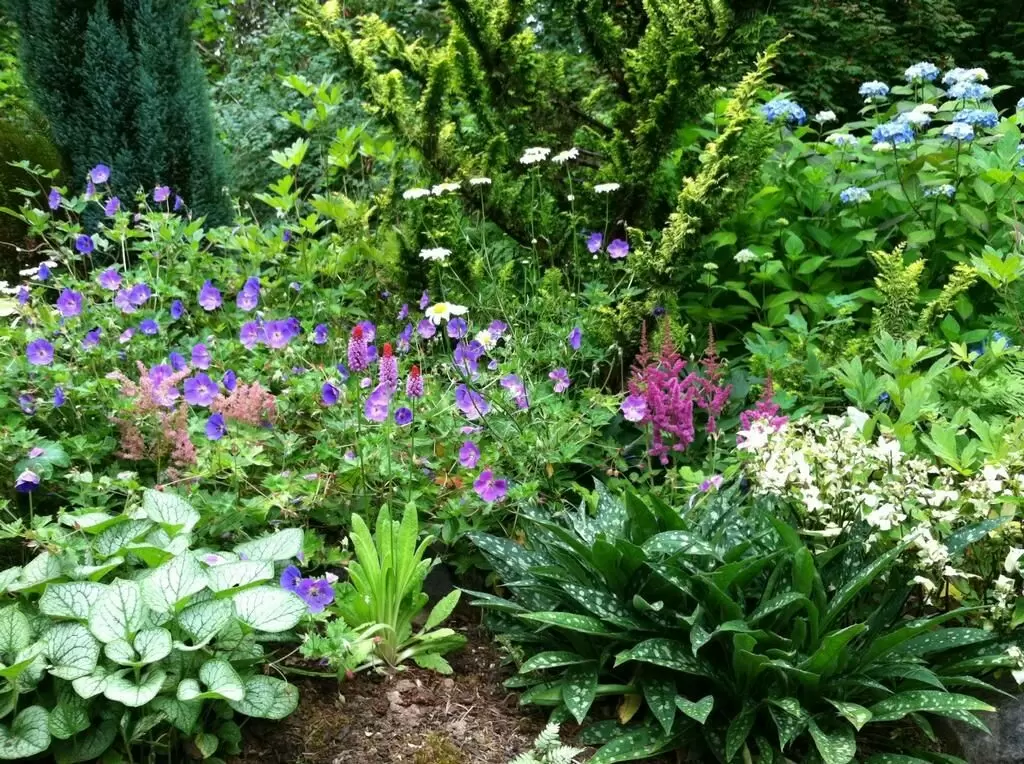 - Бруннеры и медуницы — настоящие ценители тенистых мест;
