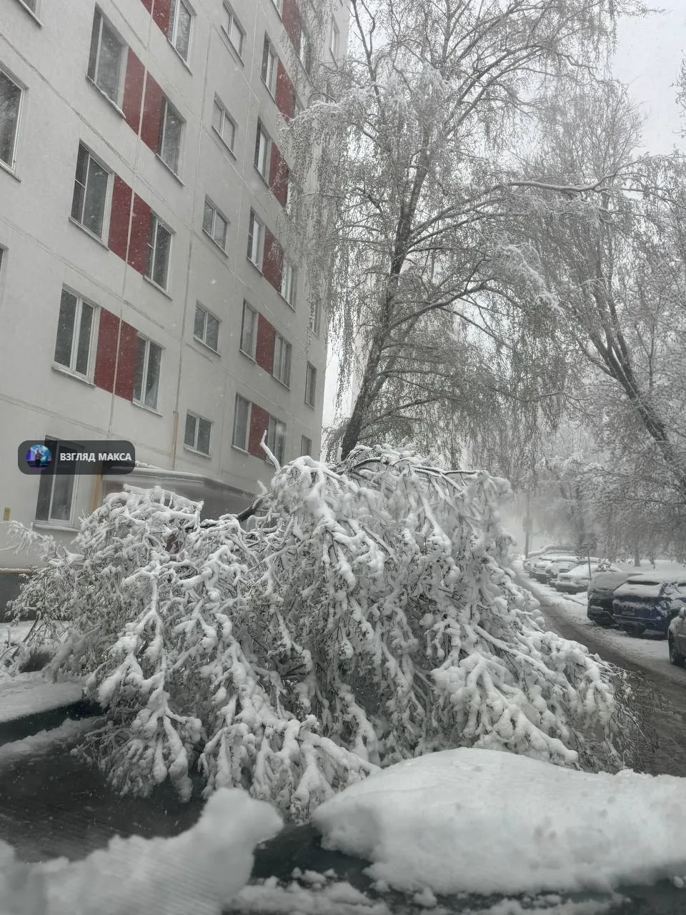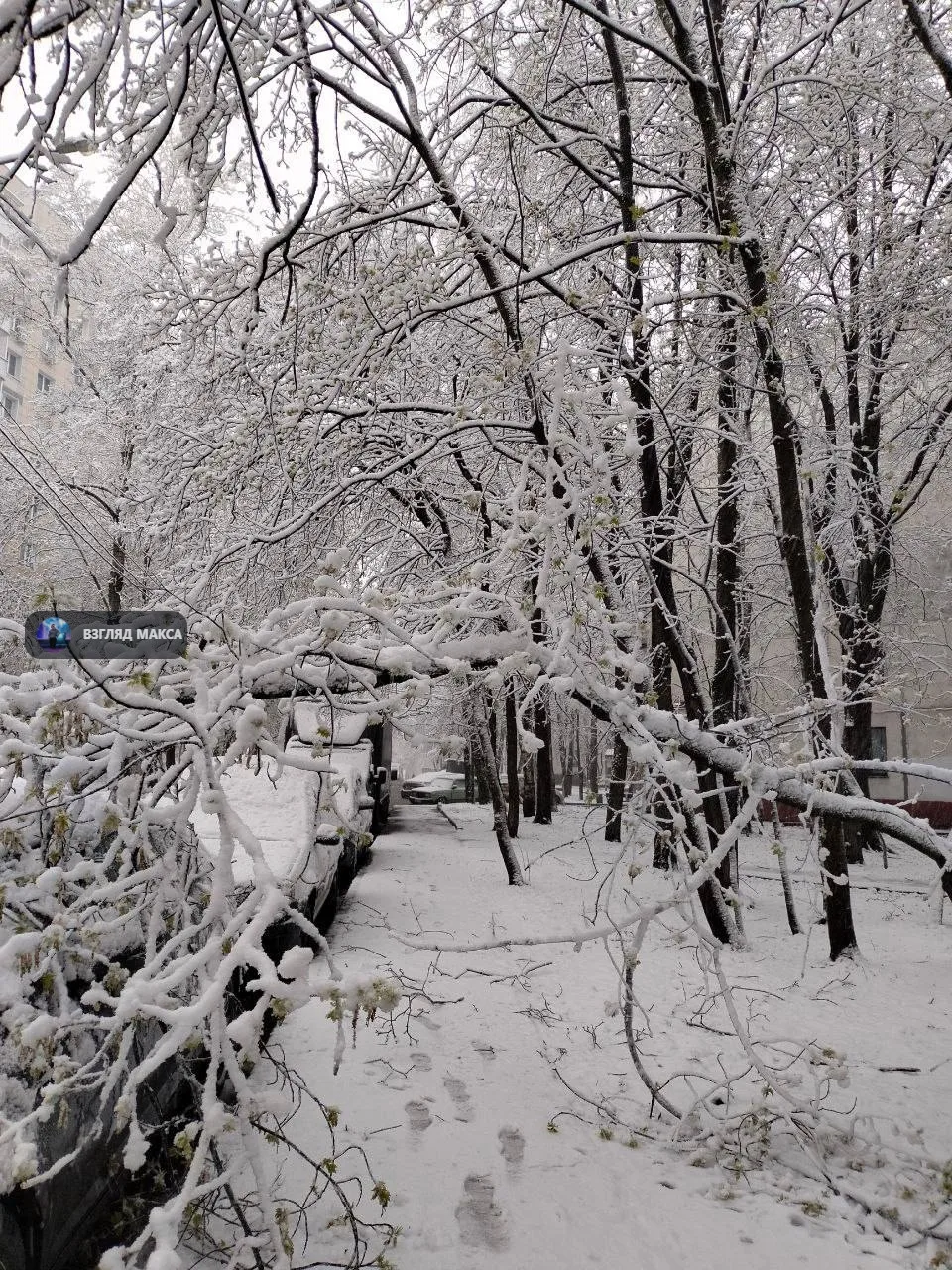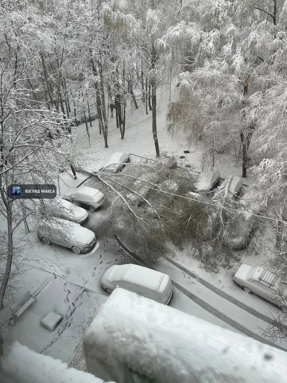 Тяжёлый мокрый снег налипает на провода и кроны деревьев, ломая ветки. Коммунальные службы фиксируют десятки случаев падения деревьев по всему городу. Одно из них рухнуло прямо на пути Арбатско-Покровской линии метро — движение между станциями «Партизанская» и «Щёлковская» пришлось останавливать, интервалы на всей синей ветке временно увеличились. Позже столичный Дептранс сообщил о восстановлении графика.