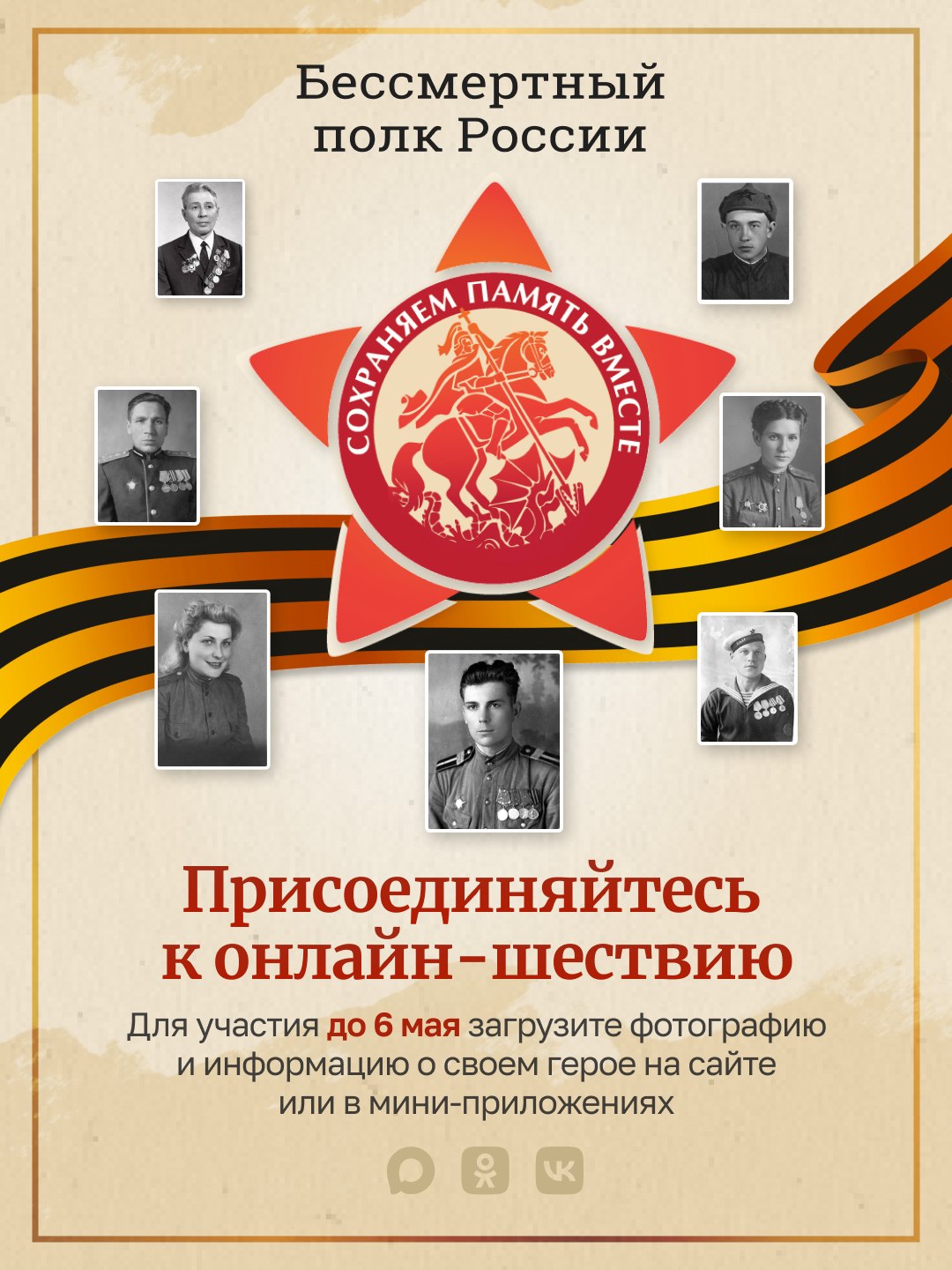 Для участия необходимо до 6 мая загрузить фотографию и информацию о своем герое. Все заявки проходят обязательную модерацию, а само онлайн-шествие начнется 9 мая в 12:00.